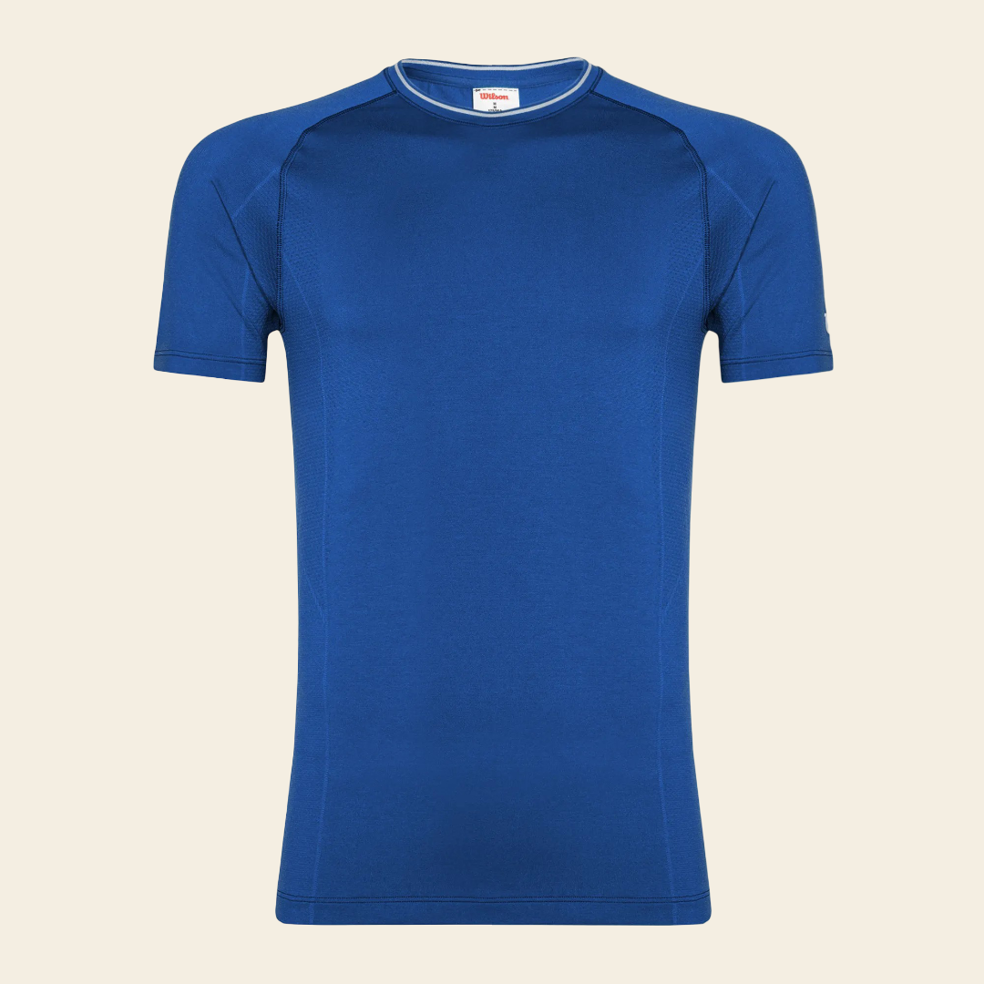 Lightweight and breathable, the Wilson Men’s Team Players Seamless Crew has clean lines and sporty style for the court. It features a ribbed crewneck with contrast accent, raglan sleeves for maximum range of motion, anti-odour technology, quick-drying moisture wicking performance, and a heat seal Wilson logo on the left sleeve.